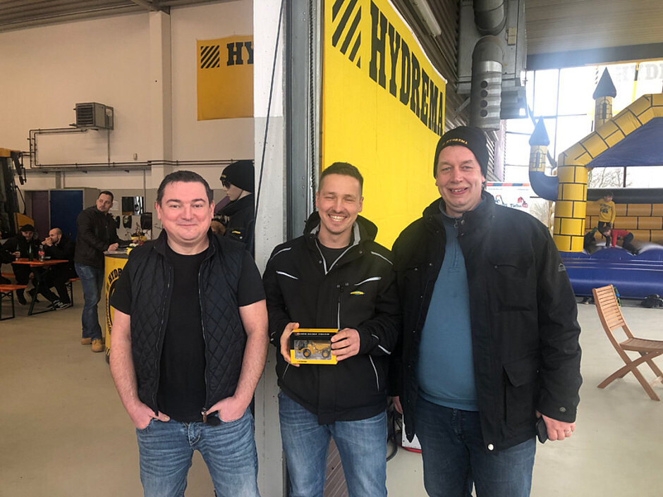 Bei der Verlosung des Hauptgewinns wurde das Los tatsächlich auch für jemanden gezogen, der von sehr weit weg kam. Matthias Rumpel, Geschäftsführer der Carl Rumpel GmbH, nahm das Dumper-Modell vor zahlreichen Kunden in Empfang und bestätigte am Mikrofon: Ja, wir sind tatsächlich sehr begeistert von dem HYDREMA Citybagger und es hat uns sehr gefreut, hier zur Hausmesse gekommen zu sein.“ Die Verlosung fand vor zahlreichen wartenden Gästen statt und vorher wurden aus der Glastrommel noch verschiedene Sachpreise gezogen, die von sehr zufriedenen Gästen mit nach Hause genommen wurden. Ganz sicher aber haben alle Gäste und Besucher, aber auch Mit-Aussteller an dem Tag etwas anderes mitgenommen. Das Wissen, dass HYDREMA ein sympathischer Hersteller ist, der nicht nur Premiumprodukte herstellt, sondern auch weiß, wie man einen Tag unter Freunden gestalten muss, damit keiner bereut, seine Zeit investiert zu haben.