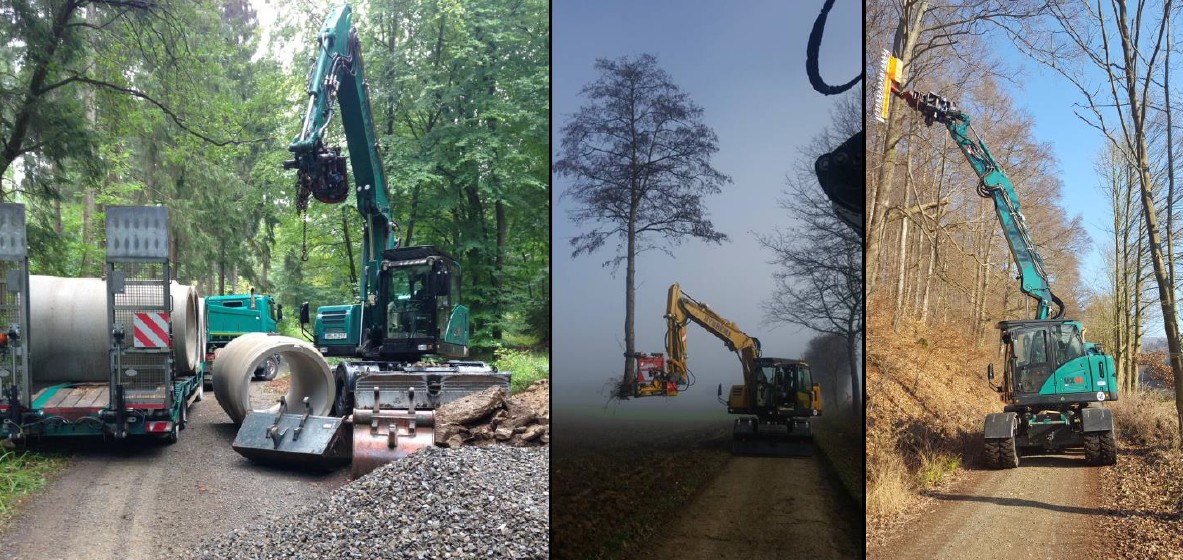 Ihre Eigenschaften werden zum Beispiel auch sehr gerne in der Forst- und Landtechnik geschätzt. Mit Ihrem kurzen Heck erleichtern Sie das Arbeiten im Wald und schonen so beim Schwenken die umliegenden Bäume. Die sogenannten „Zukunftsbäume“ dürfen nämlich nicht beschädigt werden. Dabei kommt dem HYDREMA zu Gute, dass er über eine enorm hohe Hydraulikleistung verfügt, denn in der Forsttechnik werden auch schwere hydraulische Anbaugeräte mit hoher Hydraulikleistung eingesetzt. Die Ausstattung mit Joysticklenkung, hohe Standsicherheit und Hubkraft bei großer Reichweite, sowie die feinfühlige Arbeitsweise sind weitere sehr geschätzte und wichtige Eigenschaften.