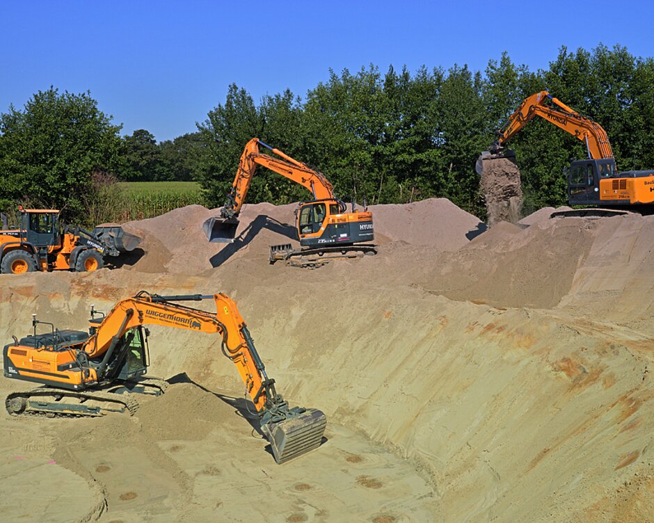 Bereits seit 2005 dreht sich aber ein Großteil ihrer Schaffenskraft um Windkraftanlagen. Genau genommen um die Herstellung der Zuwegungen der Fundamente der derzeit wohl größten Windkraftanlagen in der Region, mit Leistungen von bis zu 4 MW. In den vergangenen Jahren waren die Spezialisten schon an über 100 Windkraftanlagen tätig. Im letzten Sommer waren in wenigen Wochen Zuwegungen, Baugruben und Fundamentvorbereitungen, auch mit Schottersäulen bis zu 15 m Tiefe für sieben Windkraftanlagen im Raum Metelen/Schöppingen von Anlagenhersteller Enercon herzustellen. Mit im Einsatz war dabei auch Erdbewegungstechnik von Hyundai Construction Equipment Europe.