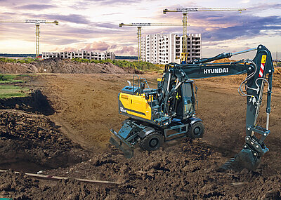 Seit Mai vergangenen Jahres ist der in RAL 5015 lackierte und 127 kW starke sowie 17,8 t schwere Mobilbagger im Einsatz. Auf der Kanalbaustelle gilt er als ein wichtiger Helfer. Zunächst beim Freilegen der Bestandskanäle, beim Verfüllen und bei der Beladung der Lkw beim Rückverfüllen. Denn das Ausbaumaterial wird außerhalb von Minderoffingen gelagert und so pendelt der Hyundai HW180 ständig zwischen Kanalbaustelle und Erdlagerplatz.