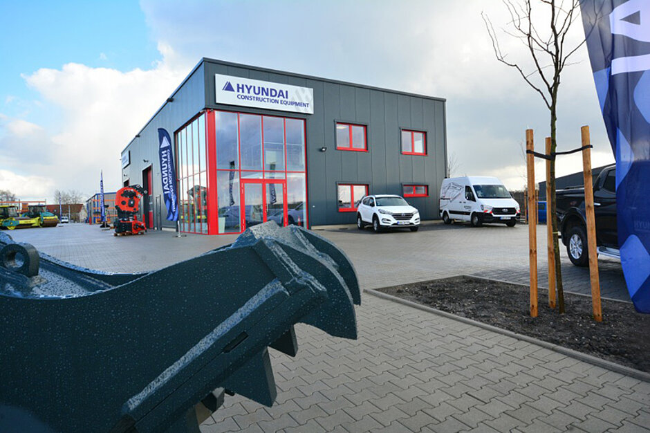 „Um die Kundennähe im Ruhrgebiet zu verbessern“, so Bram Akkermans „haben wir vor einem Jahr mit dem Bau einer neuen Niederlassung in Castrop-Rauxel begonnen. Auf 4.000 qm Fläche ist ein repräsentativer Neubau im Hyundai Baumaschinen Nord-Stil entstanden. Das große Gelände bietet Platz für Maschinen-Ausstellung, Waschplatz sowie für das moderne Büro- und Werkstattgebäude mit Sozialräumen und Ersatzteillager. Derzeit sind fünf Mitarbeiter in der Neiderlassung tätig, weitere werden derzeit eingestellt.“
