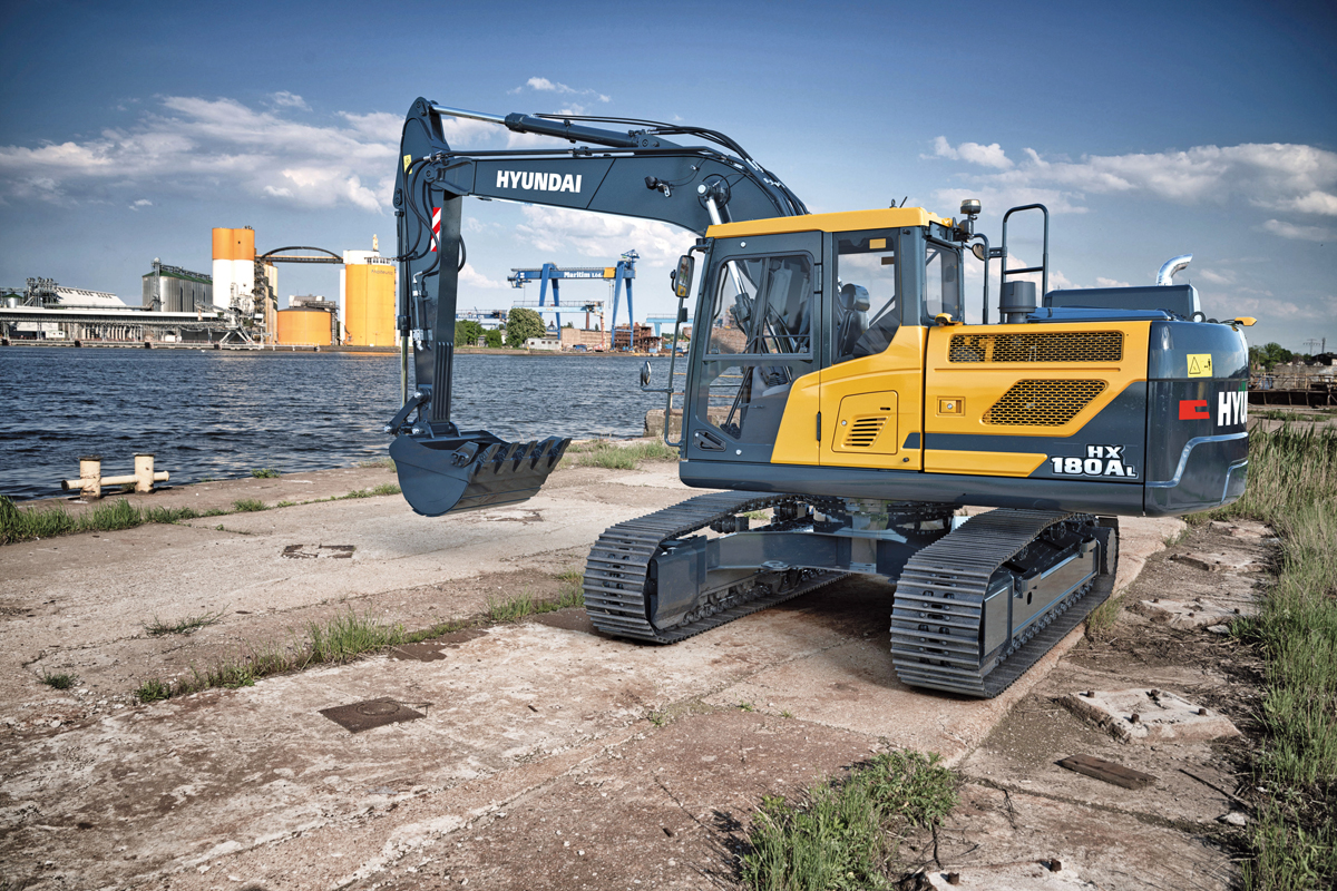 Der Bediener kann durch Aktivieren oder Deaktivieren der Auslegerprioritätsfunktion die Hubgeschwindigkeit des Auslegers im Vergleich zur Schwenkgeschwindigkeit einstellen. Die Geschwindigkeit des Löffelstiels kann ebenfalls durch Aktivieren und Deaktivieren der Löffelstiel-Regenerationsfunktion abgestimmt werden. Es ist jetzt möglich, die Maschineneinstellungen über den neuen Key-On-Init-Arbeitsmodus zu speichern, um die Einstellungen beim Motorstart zu übernehmen. Der Eigentümer der Maschine kann bei Bedarf den Zugriff des Bedieners auf bestimmte Funktionen innerhalb des Menüs beschränken. Der HX160A L bietet ein Einsatzgewicht von 17 455 kg bis 19 050 kg, während der größere HX180A L zwischen 18 140 kg und 19 985 kg wiegt. Beide Modelle können mit einer Reihe von Raupenplatten von 500 mm bis 700 mm geliefert werden, während der HX180A L auch mit einer 800 mm breiten Platte mit niedrigem Bodendruck ausgestattet werden kann. Hyundai bietet für beide Modelle ein Stützschild in voller Breite an, was die Vielseitigkeit erhöhen und gleichzeitig die Stabilität beim Graben und Heben verbessern soll.