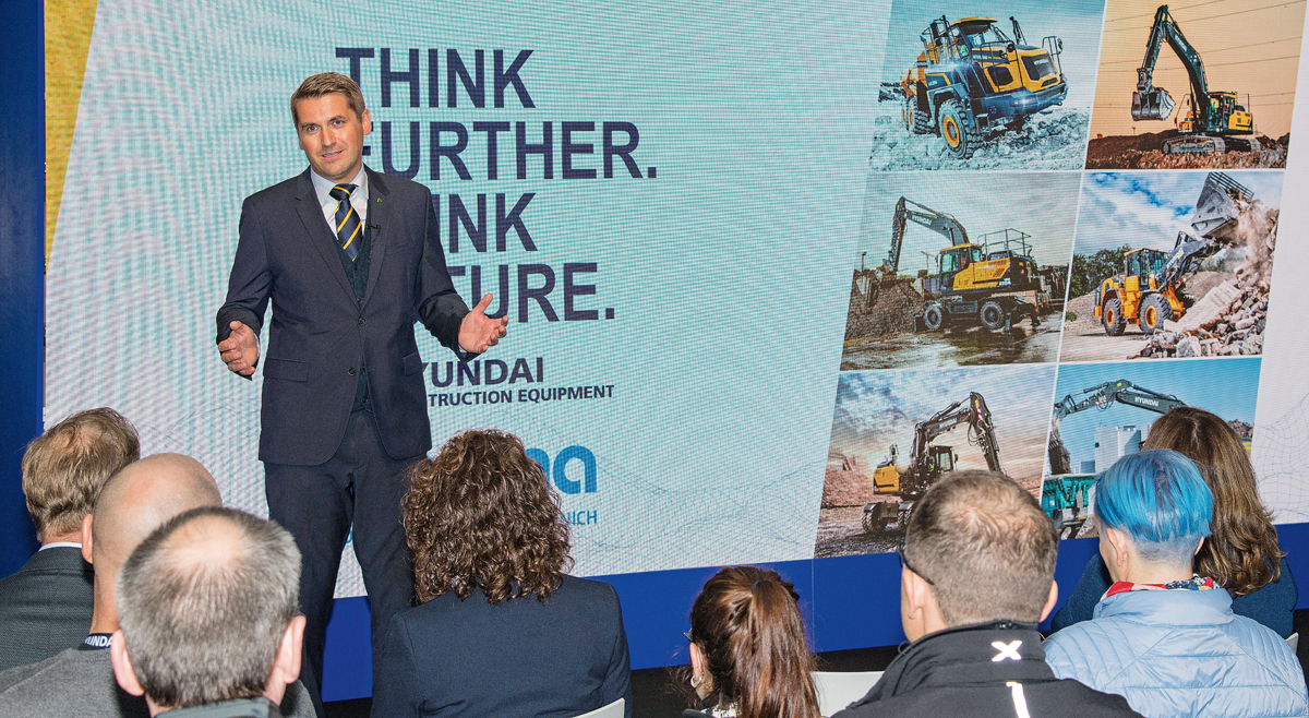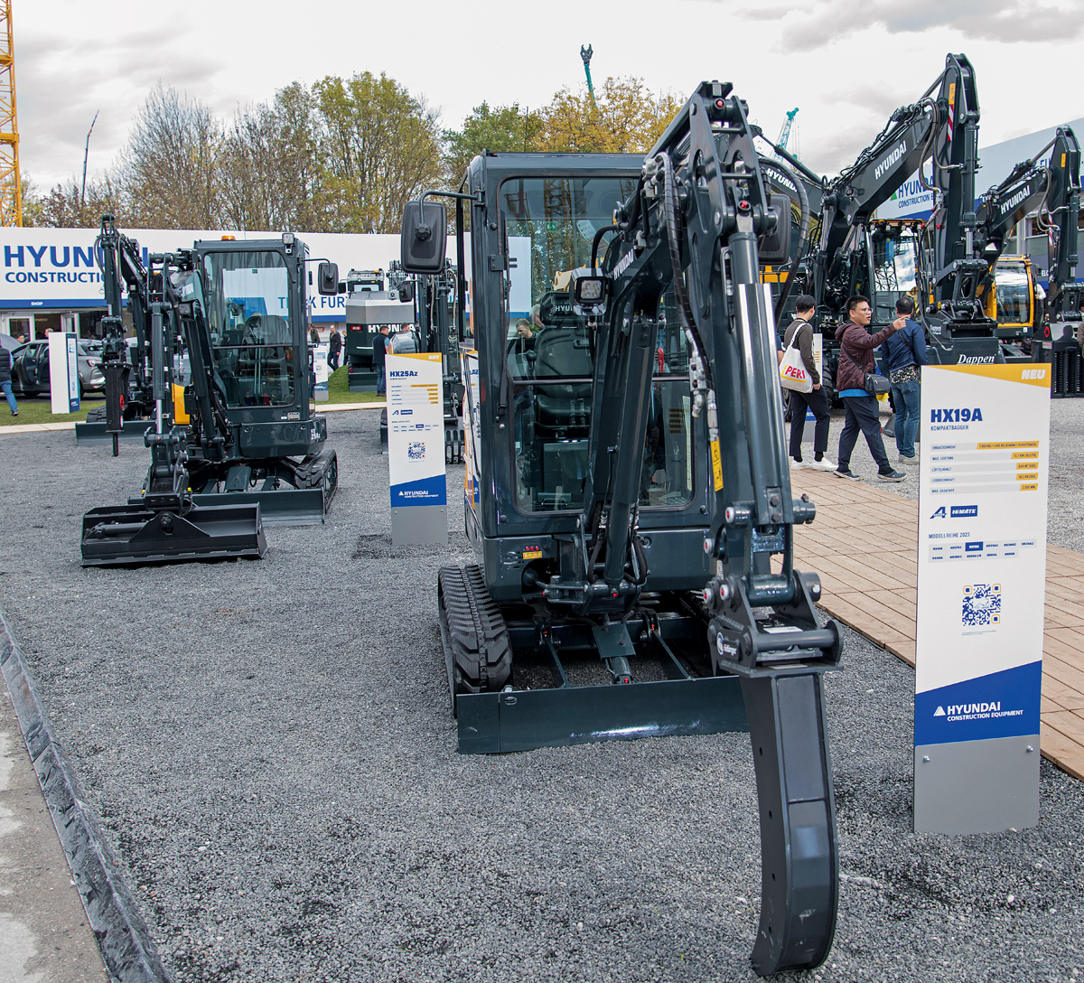 Der Umfang neu vorgestellter Hyundai-Maschinen war groß. Dem voraus ging allerdings die erklärte »Hausaufgabe«, den europäischen Markt, aber auch sich selbst noch stärker zu hinterfragen. »Dieses Jahr ist gespickt mit wichtigen Entscheidungen: Das betrifft zum einen unsere Aktivitäten auf dem europäischen Markt – insbesondere mit Blick auf unsere Minibagger. Zum anderen haben wir die Vision, eine zukunftsorientierte Markenidentität zu schaffen. Und genau die möchten wir hier auf der Bauma mit Ihnen teilen«, sagte Cheol-Gon Choi, CEO bei Hyundai Construction Equipment (HCE), der auf das geltende Hyundai-Motto »Think Further – Think Future« anspielte und damit, rückblickend betrachtet, keinesfalls zu hoch gegriffen hatte. Zum Hintergrund: »Seit über 27 Jahren exportieren wir Maschinen nach Europa, das hat uns dazu motiviert, diesen Weg weiter zu denken«, so Sungwoo Lee, Geschäftsführer bei HCE Europe. »Unser erklärtes Ziel ist es, dem europäischen Markt mit mehr Flexibilität zu begegnen und für schnellere Lieferzeiten zu sorgen. Wir haben außerdem verstanden, wie wichtig das Minibaggersegment innerhalb Europas ist, und nutzen nun unser Know-how sowie die Erfahrung der Händler und Anwender, um diesen Anforderungen gerecht zu werden.«