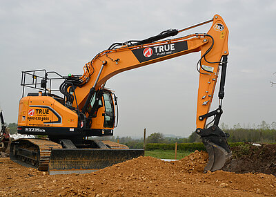 Der 35 t schwere HX300 LR ist mit einem 10 200 mm langen Ausleger und einem 7 850 mm messenden Stiel ausgerüstet. 800-mm-Dreistegbodenplatten unterstützen den sicheren Stand. Der 14 560 mm lange und einsatzfertig etwa 35 t schwere Bagger lässt sich als ungeteilte Last per Tieflader transportieren. 19 000 mm maximale Reichweite eignen den HX300 LR für Böschungs- und Kanalarbeiten, aber auch für den Einsatz im Abbruch und bei großen Erdbaulosen.