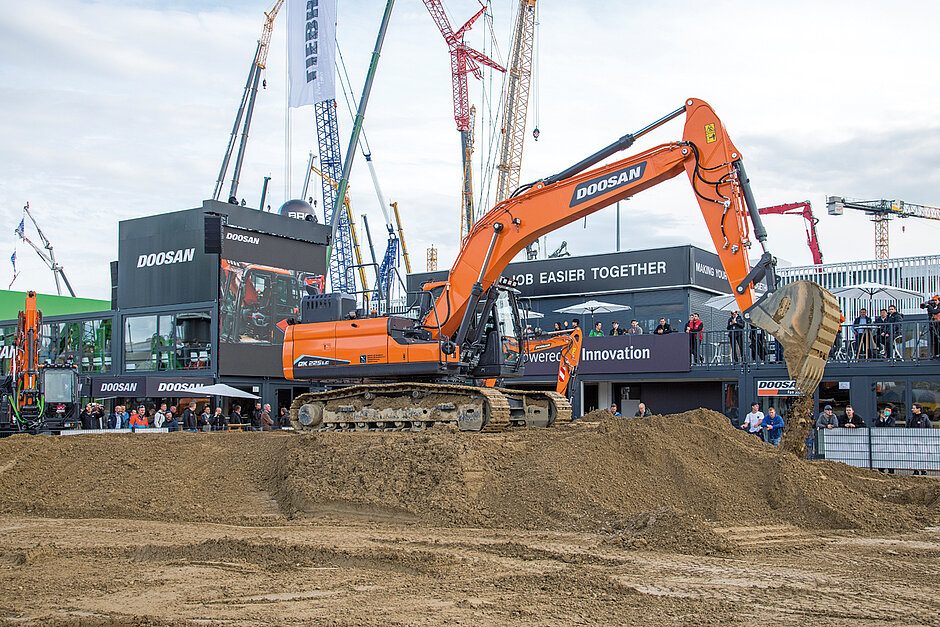 Mit gedämpften Erwartungen war Doosan in diesem Jahr auf die Bauma gegangen, doch schon kurz nach Eröffnung der Messe zeigte man sich positiv überrascht ob der vielen Besucher, der allgemein guten Gesamtstimmung sowie der positiven Reaktionen auf die Produkte und Innovationen. Dazu Hans-Joachim Erdmann, ad interim Business Direktor D-A-CH, Zentral- und Osteuropa-Region: »Bereits nach zwei Tagen wurde deutlich, dass diese Bauma ein großer Erfolg für Doosan wird. Wir sind hoch zufrieden mit dem Feedback unserer Kunden und Händler. Die Investitionen in neue innovative Produkte zahlen sich aus. Doosan investiert weiter in Zukunftstechnologien und in Märkte. Hier steht Deutschland besonders im Fokus, da wir dort noch Nachholbedarf haben.«
