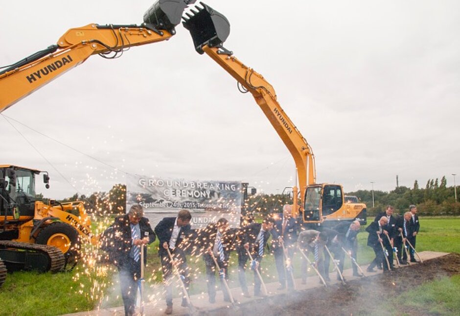 Bei der feierlichen Zeremonie der Grundsteinlegung mit Vertretern aus Politik und Wirtschaft betonte S. G. Rhee, als COO weltweit verantwortlich für den Geschäftsbereich Baumaschinen bei Hyundai Heavy Industries, dass diese umfangreiche Investition in einen modernen und repräsentativen Standort in der Provinz Limburg eine Voraussetzung für den weiteren Erfolg von Hyundai in Europa sei. »Nach unserer schon in den vergangenen Jahren äußerst positiven Entwicklung ist dies ein weiterer großer Schritt für Hyundai, um in Europa eine immer größere Rolle spielen zu können«, sagte Rhee. »Europa ist ein Schlüsselmarkt für Hyundai, vor allem auch hinsichtlich der Entwicklung von neuen Technologien.« Denn noch immer gelte die Gleichung, so Rhee: »Wer in Europa mit seinen Maschinen erfolgreich ist, der ist es dann auch weltweit.«Die neue Europazentrale von Hyundai Heavy Industries besteht aus einem dreistöckigen 5.400 Quadratmetern großen Verwaltungsgebäude, einem Lagerhaus mit einer Fläche von 13.000 Quadratmetern, einem Schulungszentrum, einer Veranstaltungshalle und einem Ausstellungsraum. Die Bauarbeiten sollen bis Ende 2016 abgeschlossen sein. Das insgesamt 81.000 Quadratmeter große Gelände liegt verkehrstechnisch ideal an der Autobahn E313, die nach Antwerpen führt, wo das Hyundai-Auslieferungslager beheimatet ist. »Mit der neuen Zentrale können wir die Kapazität unserer Maschinenteileversorgung verdoppeln«, betonte zudem HHIE-Geschäftsführer J. C. Jung.