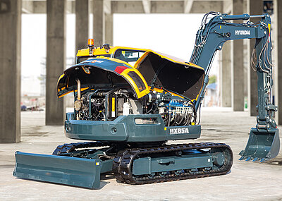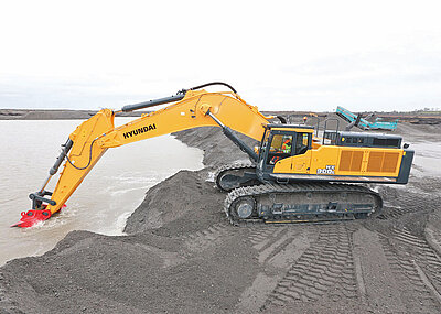 Der Maschinenmietservice von Klarmann-Lembach verfügt über einen rund 1 000 Geräte umfassenden Mietpark, der kürzlich um große Radlader und Kettenbagger von Hyundai aufgestockt wurde. Größtes Gerät der Hyundai-Vorführflotte ist der HX235LCR mit Roadliner-Pads, zweiteiligem Ausleger und Schnellwechsler, sowie ein HL975 Radlader mit 26 t und Schnellwechselsystem. Dieser hat eine 4,8-m³-Schaufel. Ideal für den Umschlag in der Gewinnung. »Damit können wir unseren Kunden nun ein noch größeres Maschinenangebot bieten und sie noch stärker an uns binden. Zumal sich die Hyundai-Maschinen bestens für die Vermietung für anspruchsvolle Einsätze eignen«, erklärt Willibald Klarmann.