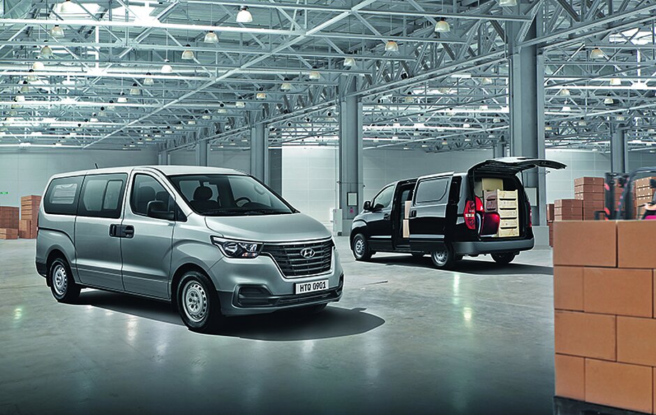 Mit bewährten Tugenden und einem modernisierten Auftritt fährt der H-1 Cargo vor. Die Nutzfahrzeugversion des H-1 ist in den Ausstattungslinien Eco und Profi bestellbar. Beide Varianten sind wahlweise mit Doppelflügeltüren oder serienmäßiger Klappe am Heck sowie als Drei- und Sechssitzer zu haben und verfügen über 4 426 l beziehungsweise 2 511 l Ladevolumen. Im H-1 Cargo Eco Dreisitzer erleichtern bereits praktische Details wie die Trennwand zwischen Fahrgast- und Laderaum sowie eine beheizbare Heckscheibe den Alltag. Der H-1 Cargo Profi bietet zusätzlich unter anderem getönte Scheiben, elektrische Fensterheber, Rückfahrwarnsystem und RDS-Radio mit CD. Optional stehen für beide Varianten versionsabhängig spezifische Komfortpakete zur Verfügung. Für den H-1 Cargo Profi kann zudem ein Navigationssystem mit Rückfahrkamera geordert werden.