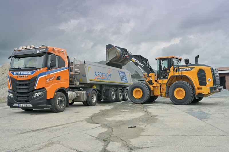 Für uns sind Treibstoffverbrauch, Ausstattung, gute Beratung und vernünftige Ersatzteilpreise wichtige Kriterien bei der Beschaffung«, sagt Achim Potthoff. »Radlader sind essentielle Umschlaggeräte für die Bedienung der Betonproduktion, zum Verladen von Zuschlagstoffen und bei allgemeinen Verlade- und Sortierarbeiten. Wir sind mit 13 l/h beim neuen HL970A sehr zufrieden.«