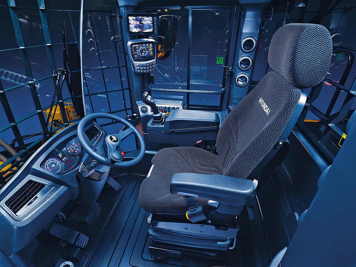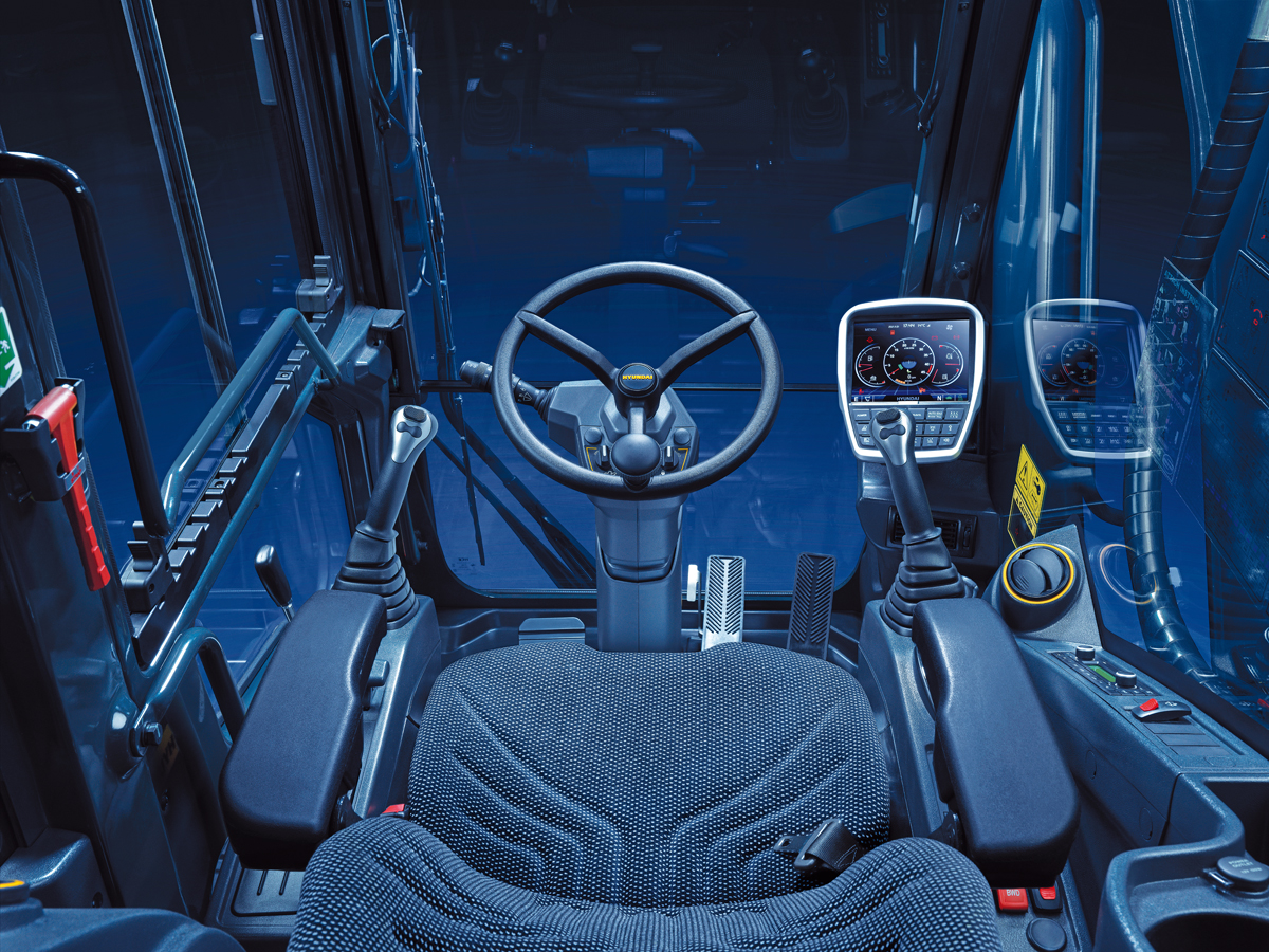 Alle Bagger der A-Serie bieten das neueste Kabinen-Design von Hyundai mit überarbeiteten Trittstufen für einen noch leichteren Zugang. Die größeren Glasflächen in Türe und Dachluke der Kabine sorgen für eine bessere Sicht und längere parallele Scheibenwischer oben und unten reinigen eine größere Fläche der Windschutzscheibe. Die Kabine ist mit einem 8"-Touchscreen ausgestattet, der Zugriff auf sämtliche Funktionen und Steuereinstellungen der Maschine erlaubt.
