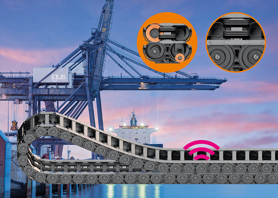 Basierend auf der P4-Rollenenergiekettenfamilie bietet Igus eine Heavy-Duty-Version an, die je nach Anwendung eine Lebensdauer von bis zu 15 Jahren besitzen soll. Dazu setzt Igus auf tribologisch optimierte Hochleistungskunststoffe. Um den Abrieb an allen Stellen zu reduzieren, kommen u. a. ein dreifaches Anschlagsystem und ein symmetrisches Design zum Einsatz. Die integrierten Rollen sollen die benötigte Antriebsenergie um 57 % im Vergleich zu einer gleitenden Kette reduzieren. Die Rollen laufen dabei versetzt aufeinander. Die kammartigen Autoglide-Öffnungsstege halten die Kette in ihrer Bahn und sollen so teure ungeplante Ausfälle reduzieren. In der neuen Bolzen-Bohrung-Verbindung nutzt Igus seine Expertise aus der Kunststoffgleitlagertechnik.