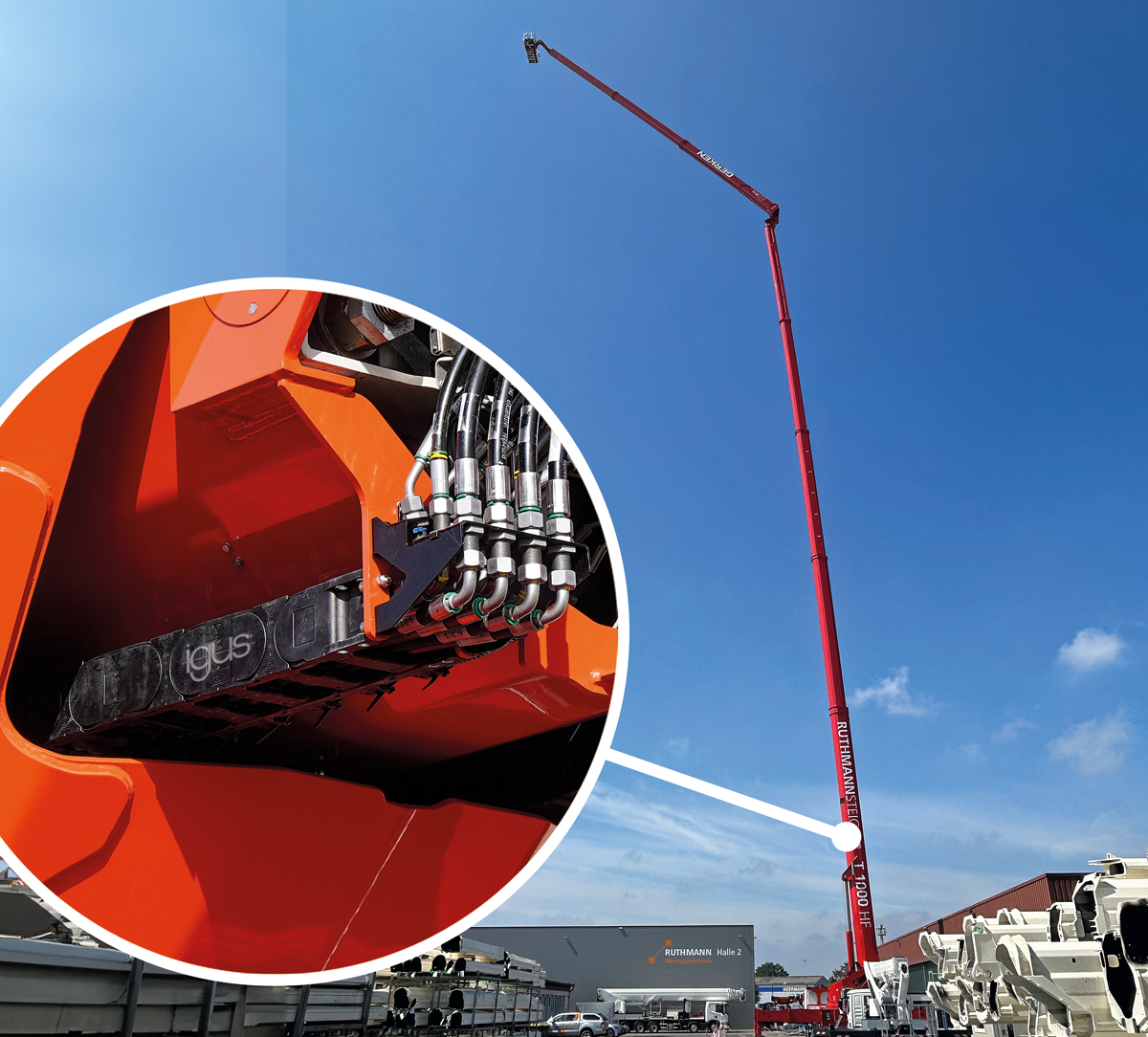 Sowohl bei Ruthmann als auch bei igus stehen die Kundenbedürfnisse im Fokus. Beide Unternehmen haben außerdem den Anspruch, stets die besten Lösungen am Markt anzubieten, sowohl von den Produkten her als auch vom Service. igus bietet dafür kundenindividuelle »readychains« ab Stückzahl 1 an, ob mit Steuerleitung und Hydraulikschläuchen wie bei Ruthmann oder auch anderen Leitungstypen von Servo- über Motor- und Roboterleitungen bis zu Bus-, Geber-, LWL- und Datenleitungen.