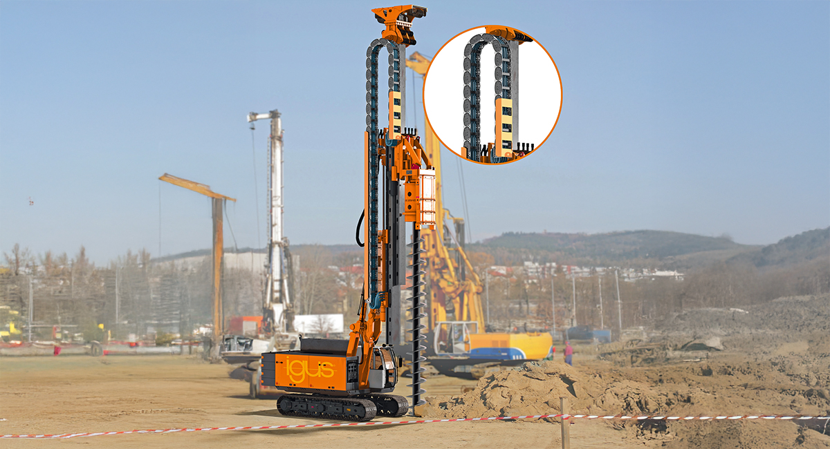 Leitungen und Schläuche an Bohrgeräten, Hubsteigern und Hebebühnen müssen nicht nur extremen Belastungen standhalten, sondern vor allem sicher und kompakt an der Maschine in die Höhe geführt werden. Für solche Szenarien setzen Anwender oftmals schwere Stahlketten ein. Die sind jedoch aufwendig zu montieren und besitzen das Risiko, dass im Wartungs- oder Reparaturfall die komplette Kette getauscht werden muss. Gleichzeitig bedeutet ein Maschinenstillstand Ausfallkosten. Daher hat Igus mit der »YE« die laut eigener Aussage weltweit erste Hybridkette entwickelt, welche die Vorteile von Stahl und Kunststoff miteinander vereint.