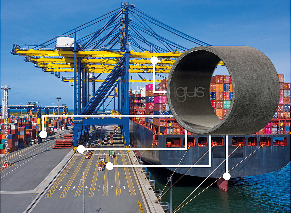Mit der Produktfamilie »igutex« hat Igus Gleitlagerwerkstoffe aus hochfestem Faserverbundwerkstoffen entwickelt. Sie kommen dort zum Einsatz, wo besonders hohe Lasten auftreten und spritzgegossene Gleitlager an ihre Belastungsgrenzen stoßen. »Das können Baumaschinen, die Agrarindustrie oder auch Anwendungen in Containerkranen oder im Offshore-Bereich sein«, erklärt Uwe Sund, Produktmanager Schwerlastlager bei der Igus GmbH. Für maximale Widerstandsfähigkeit sorgen äußerst zugfeste Filamente und ihre besondere Wickeltechnikstruktur. Ein robustes Glasfasergewebe dient dabei als Außenhülle, während eine tribologisch optimierte innere Gleitschicht die Reibung auf der Welle verringert. »Unsere ›igutex‹-Werkstoffe können Anwendungen umsetzen, die bis zu 200 MPa aufnehmen müssen«, erläutert Sund.