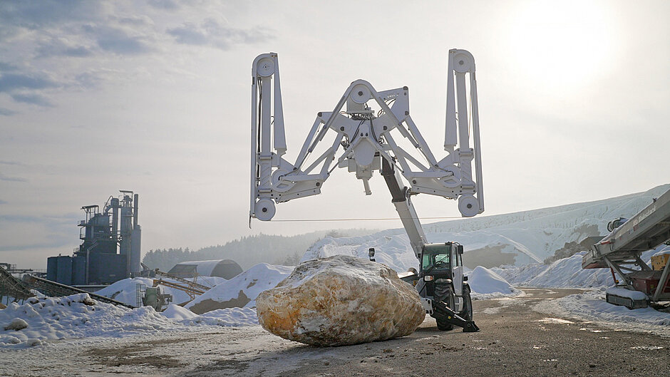 Ein Felsblock mit mehreren Hundert Tonnen löst sich aus der Wand und bleibt einige Meter weiter liegen. Nun schlägt die Stunde der mobilen Diamantseilsäge MDS 5034 von Schwing. Montiert auf einen Manitou-Teleskoplader fährt sie an Ort und Stelle und wird via Fernsteuerung bei einem Schwenkbereich von 66° dem Schnittwunsch entsprechend ausgerichtet. Während Staub und Schmutzpartikel mit einem Wasserstrahl gebunden werden, setzt sich das Diamantseil mit einer Geschwindigkeit von 20 bis 40 m pro Sekunde in Bewegung. Bis zu 5 m breite Steinblöcke kann die MDS jetzt bei einer maximalen Schnitttiefe von 3,4 m und – je nach Gesteinsart – Geschwindigkeit von 10 cm pro Minute schneiden. Anschließend wird die Säge wieder kompakt zusammengefahren und auf einen regulären Tieflader gesetzt. Mit einer Transportbreite von unter drei Metern kann sie ohne Sonderzulassung in den Steinbruch gebracht werden. Dort wirken auf die Maschine zwei- bis zweieinhalbfache G-Kräfte. Hinzu kommen die hohe Schmutzbelastung und Wasserknappheit, was eine ständige Reinigung erschwert. Aus diesen Gründen hat sich Schwing für die Installation von Gleitlagern und Energieketten des motion plastics Spezialisten igus entschieden. Die Komponenten bestehen aus tribologisch optimierten Hochleistungskunststoffen und eignen sich auch für den Einsatz bei hoher Belastung.