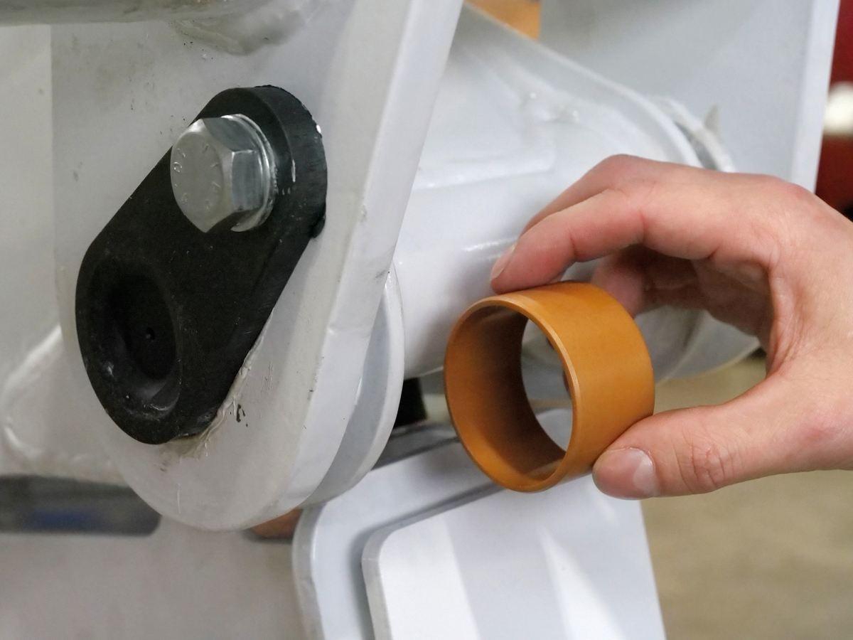 igus ist bereits seit Beginn der MDS-Entwicklung bei Schwing mit an Bord. Dabei war am Anfang gar nicht klar, dass mit den Q2-Buchsen ein zentraler Bestandteil von igus kommen würde. Denn bislang wurden nur Messingbuchsen verwendet. Ausschlaggebend war für Kriegl der Erfahrungsbericht eines österreichischen Baggerherstellers, der ebenfalls igus-Buchsen einsetzt. »Am Ende haben wir es nie mit Messing verglichen. Durch ihre Dämpfungseigenschaften sind die Kunststoffgleitlager passend für die MDS«, meint Kriegl. Im Vergleich zu Baumaschinen hält sich die Schlagbelastung der Säge in Grenzen, die MDS wird nur wenige Male aus- und wieder eingefahren. Der wichtigste Aspekt liegt für Schwing in den Schmiereigenschaften. Die iglidur Q2-Buchsen sind selbstschmierend und trocken laufend. Das eliminiert die Gefahr einer Verunreinigung. Zudem eignen sich sich damit auch für staub- und schmutzbelastete Umgebungen wie im Steinbruch. »Wenn Schmutz in die Kunststofflager hineinkommt, ist das nicht so schlimm wie bei Messing. Der Kunststoff verzeiht mehr Fehler«, so der Konstrukteur.d