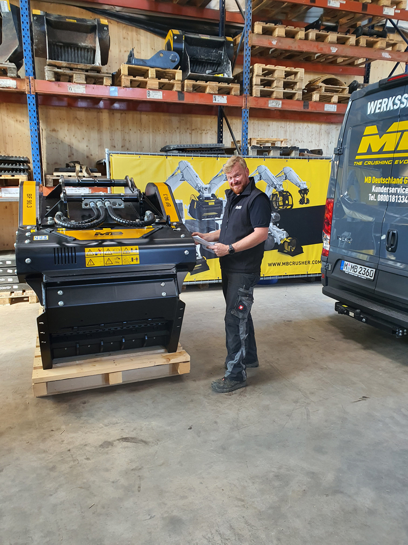 “Wir möchten die Bedürfnisse unserer Kunden erfüllen. Eins ist es, auf ein Expertenteam zählen zu können, um die Haltbarkeitseigenschaften und die Zuverlässigkeit der MB Crusher Produkte voll auszuschöpfen, indem wir Hilfestellung, Unterstützung und die Möglichkeit bieten, die notwendigen Ersatzteile sofort verfügbar zu haben.”