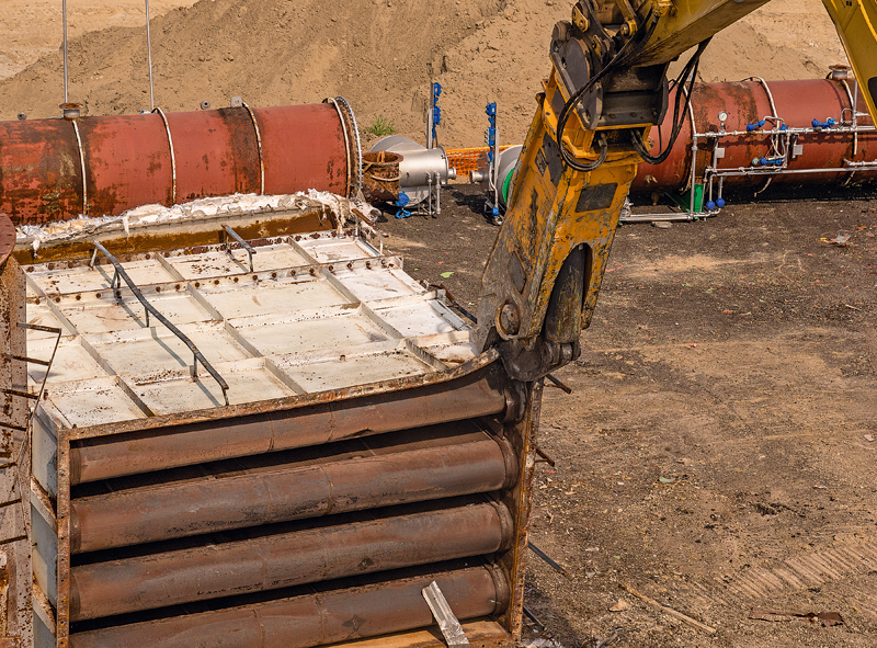 Die Wahl einer relativ kleinen Schere sei daher durch die Notwendigkeit ausgelöst worden, in den ausgewiesenen Zonen arbeiten zu können, die sich alle durch relativ kleine Abmessungen auszeichnen. »Eine größere als die gewählte Indeco-Schere hätte einen größeren Bagger erforderlich gemacht, »was die Mobilität während der Abbruchphasen der Turbokompressoren und auf lange Sicht auch die Produktivität aller Arbeitsvorgänge erheblich beeinträchtigt hätte«, so Di Vita weiter.