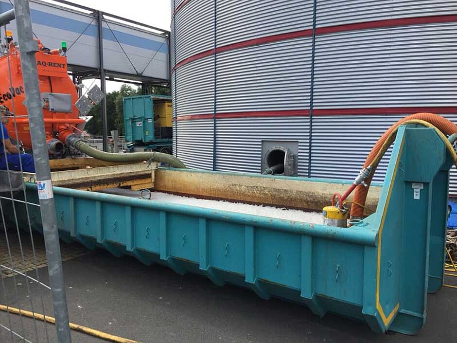 „Wir arbeiten mit der Abwasser-Tauchpumpe P 40 CS von AURAS, weil sie sicher und zuverlässig Abwasser mit bis zu 44 Millimeter großen Partikeln fördert“, erklärt Sabrina Bethmann, Geschäftsführerin der Industriewartung Süd. Die P 40 CS pumpt das Wasser-Schlamm-Gemisch etwa 5 bis 10 Meter aus dem Klärbecken beziehungsweise Faulturm nach oben und im Anschluss 20 bis 150 Meter in einen Container. Dort wird der Unrat ausgesiebt und das von den Schlämmen befreiten Restwasser wieder zurück in das Becken gepumpt.