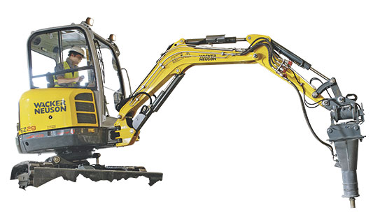 Der EZ17 ist der kleinste Bagger ohne Hecküberstand von Wacker Neuson. Mit einem Betriebsgewicht von 1,7 t und einer Breite von unter einem Meter bei teleskopiertem Fahrwerk vereint er maximale Kompaktheit, Beweglichkeit, Grabkraft und Ergonomie. Der großvolumige Dieselmotor soll Maßstäbe hinsichtlich Leistung und Effizienz setzen. Niedrige Drehzahlen sorgen dabei für geringe Lärm- und Verbrauchswerte. Das Load-Sensing-Hydrauliksystem mit Verstellpumpe unterstützt runde, harmonische und fein steuerbare Armbewegungen durch eine Optimierung der Leistung je Zeiteinheit bei voller und ökonomischer Kraftentfaltung. Der EZ17 zeichnet sich außerdem durch Präzision bei einfacher Handhabung aus und zwar ab dem ersten Steuerimpuls und unabhängig von Funktion und Last.