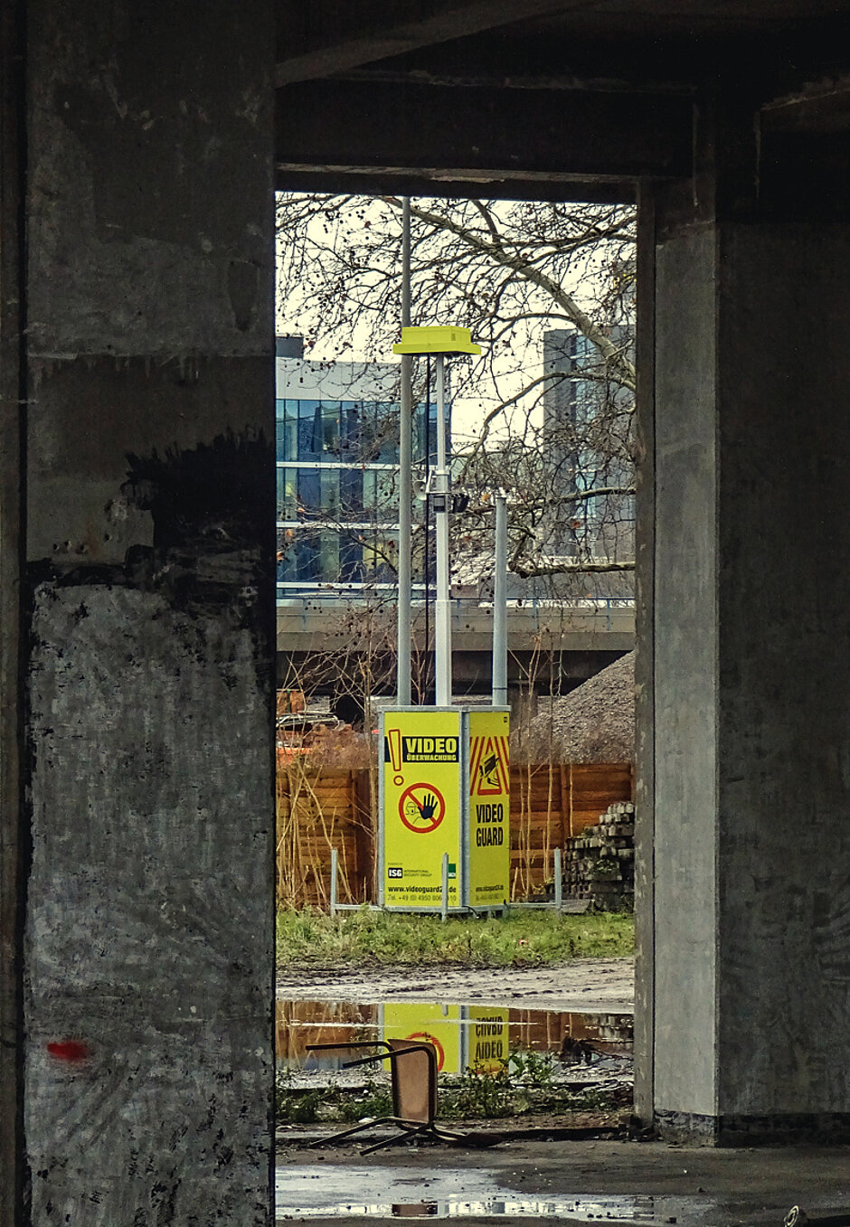 Der 6 m hohe Turm der International Security Group und von Maibach Velen deckt Baustellen mithilfe je dreier intelligent angeordneter Kameras flächendeckend ab. Dabei kann auf ein Schwenken – wie es bei Systemen anderer Hersteller üblich ist – verzichtet werden. Dies verhindert, dass blinde Flecken entstehen – Lücken in der Detektion bleiben somit aus. Betreten Unbefugte das überwachte Gelände, schickt das System ein Signal an die unternehmenseigene Alarmzentrale. Das geschulte Sicherheitspersonal greift von dort aus unverzüglich in das Geschehen ein. So dient beispielsweise eine Lautsprecheranlage der ersten Abschreckung. Sollten die Eindringlinge die Baustelle trotz Aufforderung nicht verlassen, ziehen die Mitarbeiter Interventionskräfte wie die ortsansässige Polizei hinzu.