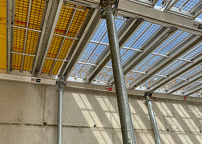 Im Hardware-Bereich zeigt Ischebeck neue hilfreiche Komponenten zu seinen Systemlösungen in allen drei Produktsegmenten. So gibt es für das Deckenschalungssystem Titan HV ein neues Mesh-Paneel, das durch die Ausstattung mit einem schwenkbaren Kopfstück für das bequeme Ein- und Ausschalen von unten optimiert wurde. Das Paneel kommt meist zum Einsatz, wenn erhöhte Anforderungen an die Arbeitssicherheit gestellt werden, da es schon im Startfeld eine hohe Stabilität bietet und sofort begehbar ist.