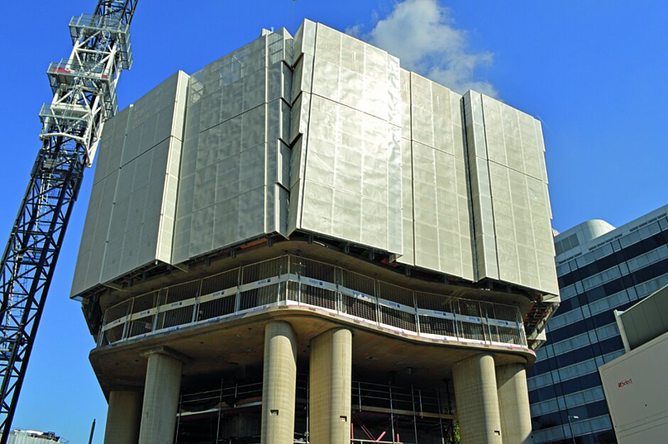 Im Bereich Sicherheit und Logistik auf der Baustelle wird der »Screen Saver« zu sehen sein, eine Einhausung aus leichten Alu-Lochblechen mit Plattformen auf vier Ebenen, die sowohl die Arbeiter schützt, als auch ein Herunterfallen von Gegenständen verhindert. Durch eine horizontale wie auch vertikale Verstellbarkeit verspricht der Screen Saver eine hohe Flexibilität bei der Anpassung an moderne Gebäudegeometrien.