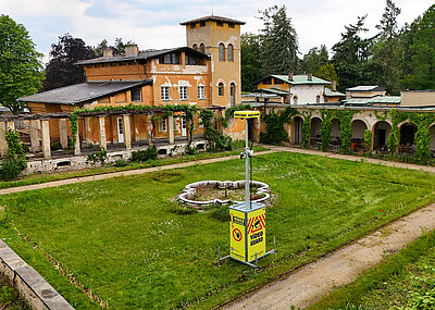 Die Kameratürme gewährleisten einen lückenlosen Schutz: Mit drei Ultra-Lowlight-Kameras, die verschiedene Öffnungswinkel abdecken, behält »Video Guard Professional« Nah- und Fernbereiche im Blick. Ein Schwenken der Kameras ist dabei nicht notwendig. Der Tower kann auf bis zu sechs Meter Höhe ausgefahren werden, wodurch sein Überwachungsradius besonders groß ausfällt. Integrierte Infrarotscheinwerfer sorgen auch in der Dunkelheit für eine flächendeckende Bewachung.