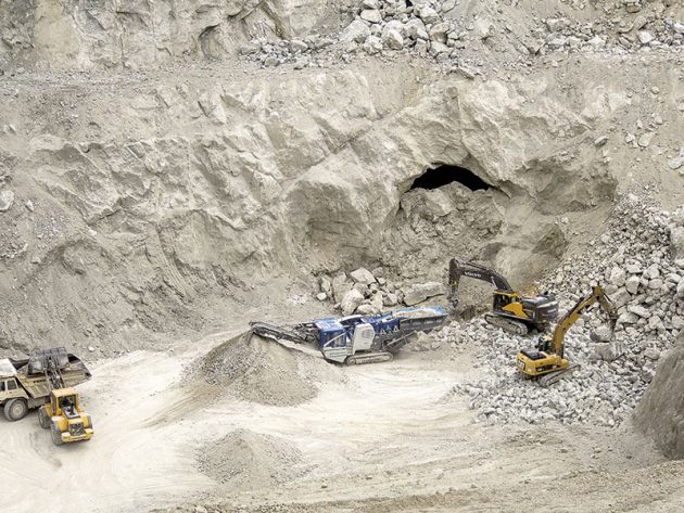 Im Monte-Tondo-Werk produziert die MC 110 Z Evo bis zu 210 t/h, indem sie einen Rohstoff mit LA-27-Werten zerkleinert: eine Brechbarkeit von 50 % und eine Rohdichte von 1,35 t/m³. Die Calciumsulfat-Blöcke werden von 0 – 500 mm auf 0 – 160 mm zerkleinert. Letztere bildet eine ideale Größe für den sekundären Zerkleinerungsprozess, der nun von einem verbesserten Produktionsablauf profitiert. So ebnet beispielsweise das unabhängige Doppeldeckervorsieb das Material im Trichter, um ein konstantes Produktionsvolumen zu ermöglichen. Die Produktionskapazität profitiert zudem vom Continuous-Feed-System. Der Backenbrecher bietet bei seiner vergleichsweise starken Leistung im Verhältnis zu seiner Größe auch den Vorteil eines geringen Kraftstoffverbrauchs dank Diesel-Direktantrieb. Das Ergebnis ist ein System mit 30 % weniger Verbrauch (Anbieterangaben) im Vergleich zu mobilen Backenbrechanlagen, die mit herkömmlichen Hydrauliksystemen ausgestattet sind. Wie der technische Leiter des Gipswerks, Silvano Sartor, kommentiert, hat der mobile Backenbrecher jetzt und auch in Zukunft einen positiven Effekt auf die Produktion: »Der Erwerb dieses Backenbrechers war von enormer Wichtigkeit, da er Teil eines Plans ist, der uns erlauben wird, die Produktion basierend auf der tatsächlichen Nachfrage der Produktionsanlage abzustimmen. Gleichzeitig wird dieser Plan zu logistischen Verbesserungen führen, da die Verteilung des Personals auf verschiedene, weit voneinander entfernte Bereiche des Gipswerks, wie es früher der Fall war, nun vermieden werden kann. All das bietet klare Vorteile für Sicherheit und Produktivität. In dieser Anfangsphase, in der wir die Nutzung einer großen unterirdischen Anlage vermeiden, sehen wir schon eine allgemeine Optimierung der Organisation des Produktionszyklus und eine Reduzierung der Verwaltungskosten.«