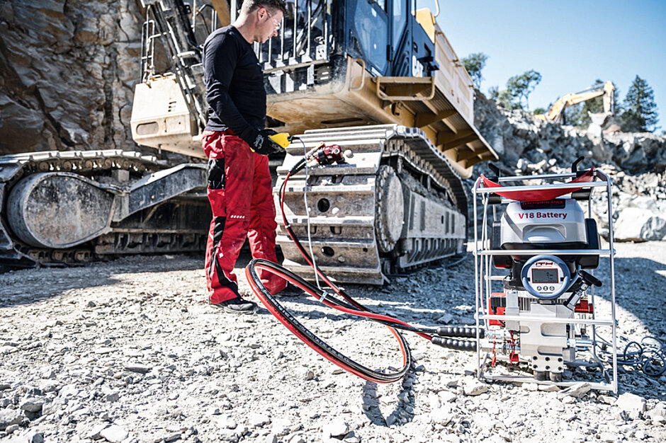 Bolt with Volt – das Entwicklungskonzept der V18 Battery erfüllt die maßgeblichen Vorgaben eines Akkuwerkzeugs: Hohe Leistung bei geringem Gewicht für schnellen Druckaufbau bei mobilem Transport und einfacher Handhabung. Die technischen Eckdaten des Aggregats umfassen ein geringes Gewicht von 23,5 kg, einen bürstenlosen und damit verschleißarmen 1,5-kW-Motor sowie hohe Fördervolumina. Der maximale Arbeitsdruck von 850 bar (12 330 Psi) ist der laut Anbieter höchste im Segment. Die Load-Sense-Technologie erhöht die Drehzahl des Motors ab einer gewissen Last automatisch – für eine optimale und konstante Leistungsabgabe und ein effizientes Akku-Management.
