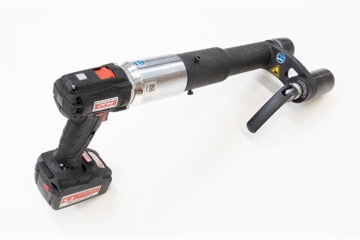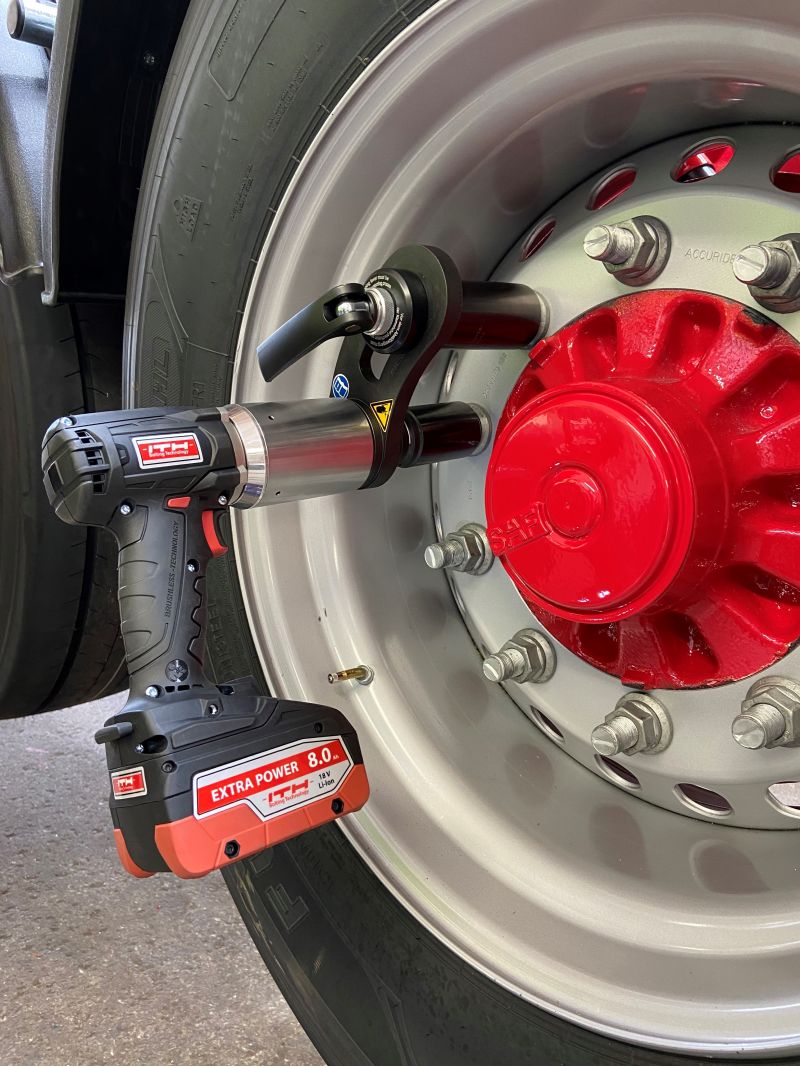 Mithilfe der Bogen-Abstützung für den leistungsstarken 18 V Akku-Drehschrauber Typ ADS, hat ITH nach eigenen Angaben eine innovative Möglichkeit für dn Radwechsel an Nutzfahrzeugen entwickelt. Mit dem besten Leistungsgewicht Nm / kg seiner Klasse, so der Hersteller, bietet der ADS durch das neuentwickelte Hochleistungsplanetenradgetriebe eine optimale Handhabung. Die Modellreihe umfasst einen Leistungsbereich von 50 Nm bis 7.000 Nm. Mit seiner langlebigen Akkukapazität von bis zu 10,0 Ah sollen die Schraubwerkzeuge ein autarkes Arbeiten unabhängig von der Energieversorgung ermöglichen und somit auch die Arbeitssicherheit erhöhen. Der verschleißarme, bürstenlose Motor sei zudem noch besonders geräusch- und vibrationsarm – dies sorge für ein handgelenkschonendes Arbeiten. Ein weiterer wesentlicher Vorteil, im Vergleich zu pneumatischen Schlagschraubern, sei, dass beim Verschrauben keine Staubemissionen freigesetzt werden.