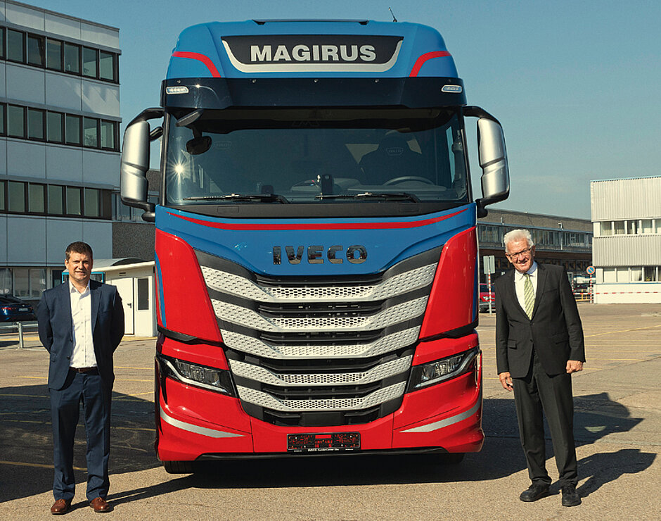 Winfried Kretschmann, Ministerpräsident des Landes Baden-Württemberg, hat sich in Ulm mit Gerrit Marx, Präsident für Nutz- und Spezialfahrzeuge bei CNH Industrial, und dem Vertriebs- und Marketingvorstand Christian Sulser der Iveco Magirus AG getroffen. Der Ministerpräsident informierte sich dabei über das Iveco-Portfolio an alternativen CNG/LNG-Antrieben und über den aktuellen Stand des europäischen Joint Venture von IVECO und FPT Industrial – der Nutzfahrzeugmarke und dem Antriebspezialisten von CNH Industrial – sowie der Nikola Motor Company. Kretschmann konnte sich am Entwicklungs- und Produktionsstandort des batterieelektrischen und brennstoffzellenbetriebenen Nikola TRE an einem der ersten Prototypen der batterieelektrischen Variante ein Bild davon machen, wie die Zukunft des emissionsfreien Güterverkehrs aussehen kann. t