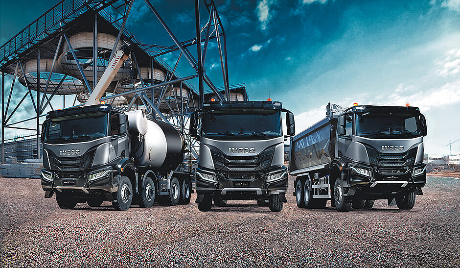 Mit seinen Fahrgestell- und Sattelzugvarianten verfügt der Iveco T-Way über das nach Herstellerangaben breiteste Angebot an Antriebsoptionen am Markt: Hinterradantrieb bei den 6x4- und 8x4-Fahrgestellen und Sattelzugmaschinen sowie Allradantrieb bei den 4x4- und 6x6-Fahrgestellen und Sattelzugmaschinen sowie bei den 8x8-Fahrgestellen. Die Allradpalette wurde um neue Modelle mit 4 m, 4,2 m und 4,5 m Radstand erweitert.