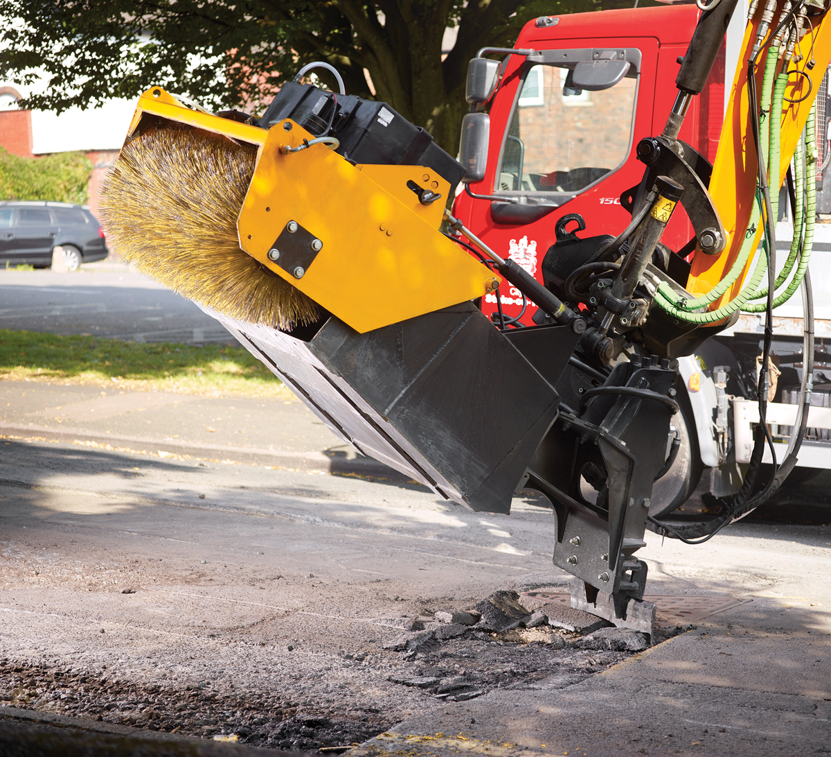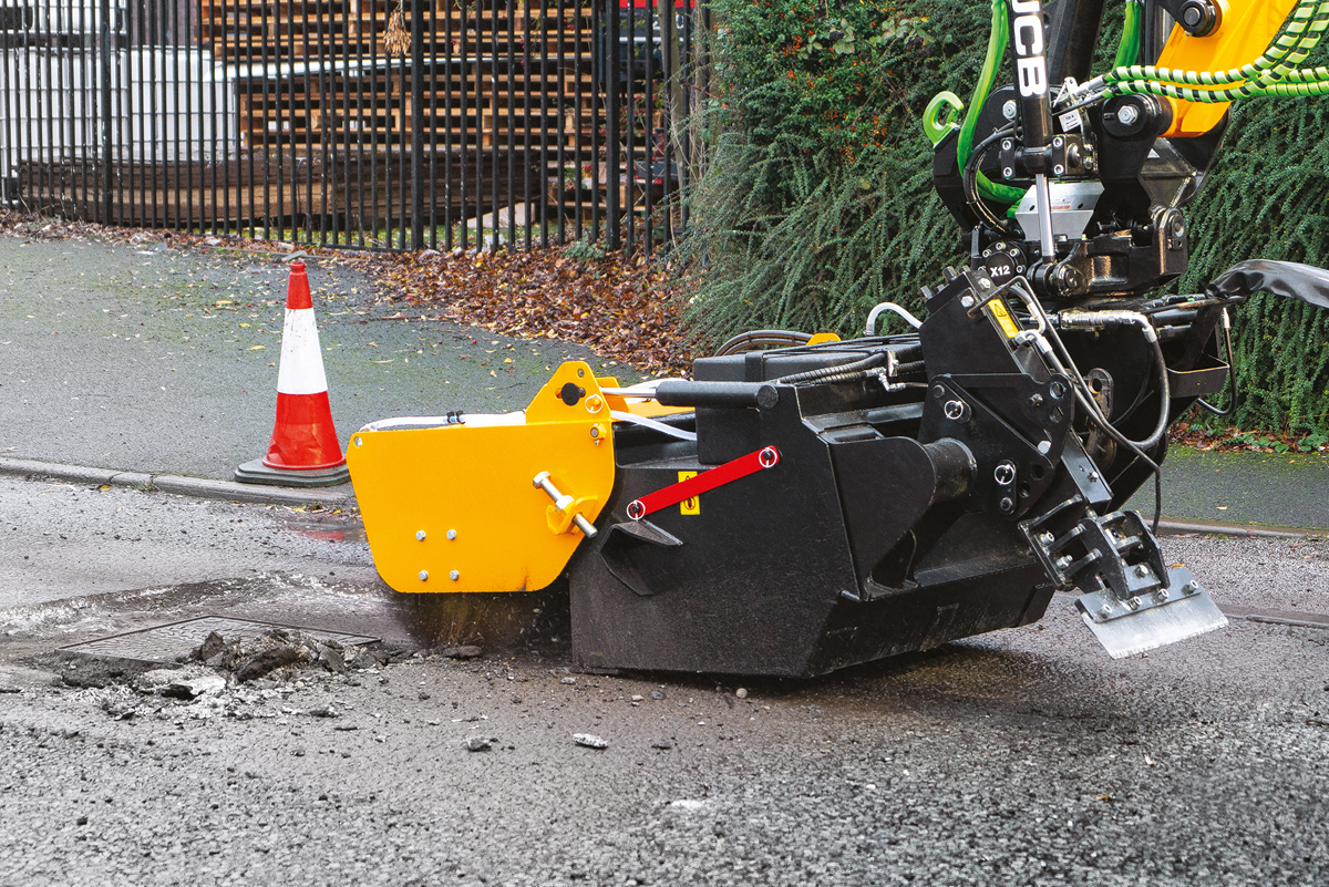 Der Pothole Pro ermögliche es dem Bauunternehmer oder der Gemeindeverwaltung, das Loch mit einer einzigen Maschine auszuschneiden, die Kanten zu bearbeiten und die Arbeitsfläche zu reinigen. Dadurch werden Arbeiten, die bislang traditionell von Instandsetzungskolonnen erledigt wurden, mechanisiert, was die täglichen Kosten um bis zu 50 Prozent senken könne. Die Maschine ist mit einer 600 mm breiten Fräse mit einem integrierten Wassertank zwecks Staubunterdrückung ausgestattet, die es dem Bediener ermöglichen soll, eine komplette Fahrbahn vom Bordstein aus zu fräsen, ohne die Maschine umzustellen. Die Maschine ist außerdem mit einer Kehrmaschine inklusive Auffangbehälter und einem hydraulischen Hammer ausgestattet, sodass der Fahrer bequem von der Kabine aus einen gleichmäßigen Ausschnitt vorbereiten könne.
