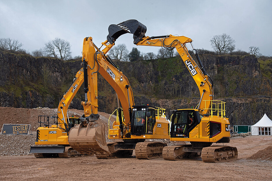 Im Mittelpunkt der Präsentation stand zweifelsohne der 370X, welcher im 35- bis 40-Tonnen-Segment das Vorgängermodell JS370 ersetzt und das bestehende JCB-Angebot der Kettenbagger 131X, 140X, 150X, 210X, 220X und 245XR nach oben ergänzt. Der neue 370X wird vom aktuellsten Cummins L9-Sechszylinder-Dieselmotor EU-Stufe V mit 8,9 l Hubraum angetrieben. Das Aggregat erbringt 240 kW (322 PS) bei 1 700 U/min und damit 14 % mehr Leistung als der JS370.