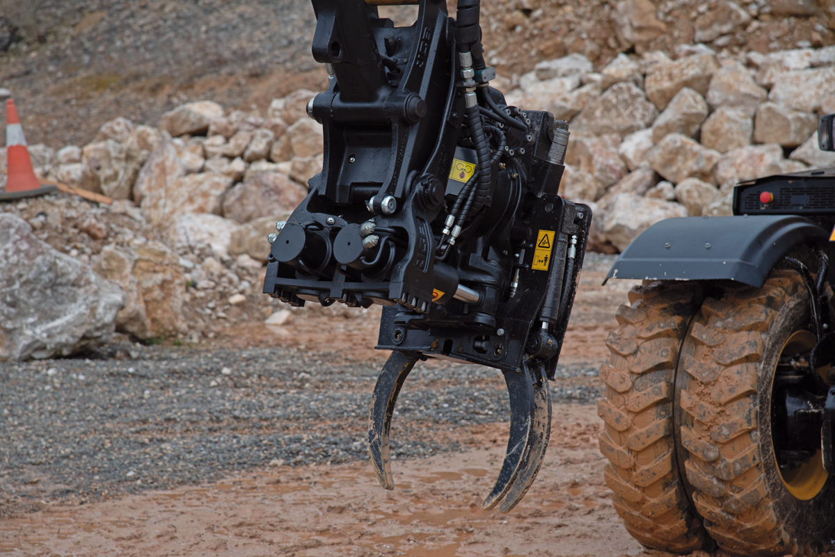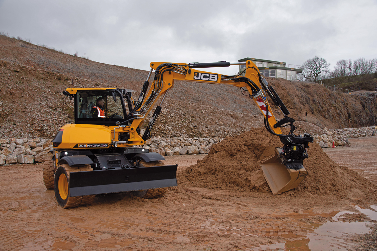 Mit dem »Raptor« hat JCB speziell für den JCB Mobilbagger Hydradig einen neuen Tiltrotator entwickelt. Dieser bietet einen Neigungswinkel von bis zu 45° und eine Rotationsgeschwindigkeit von bis zu 8,5 U/min. Das maximale Ausbrechmoment liegt bei 67 kNm, das Rotationsmoment beträgt bis zu 5,4 kNm und der JCB-Raptor liefert 2,9 kNm Kippmoment. Der Tiltrotator kann direkt am Stift montiert oder an einem S45- oder S50-Sandwich-Adapter montiert werden und wird mit oder ohne Greifer angeboten. Da sowohl die Hydraulikschläuche als auch die Highflow- und Lowflow-Hydraulikzusatzkreise durch das mittlere Gelenk verlaufen, können Anbaugeräte bei einem Durchfluss von120 l/min um 360° gedreht werden.