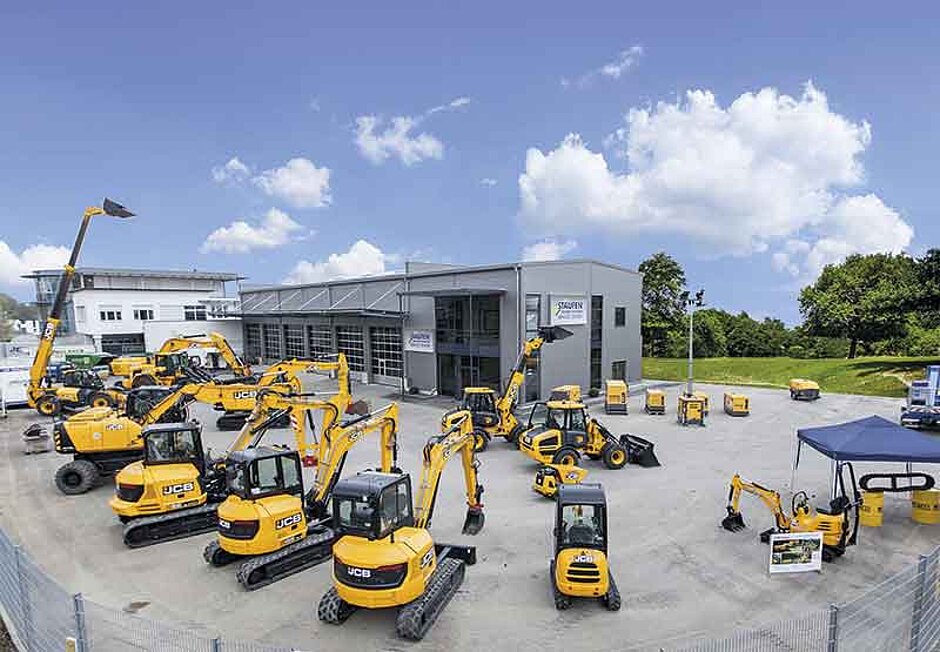 Bewusst haben sich die beiden Geschäftsführer Gerhard Vollmer und Manfred Daunenmann für eine Halle mit der besonderen Bauhöhe von 10 m entschieden: »Durch die Höhe können wir auch einen JCB-Bagger, -Radlader oder -Teleskoplader in der Halle reparieren, deren Arme eben eine gewisse Bauhöhe und Länge haben«. Die Rolltore der neuen Halle haben eine Durchfahrtshöhe von 5 m, sodass keine Bauteile vor der Einfahrt ins Service-Center demontiert werden müssen. Die Montagegrube in der Halle kann bei Bedarf unter einem Fahrzeug auf Knopfdruck geöffnet werden – wird sie nicht benötigt, kann sie geschlossen und mit bis zu 20 t befahren werden.