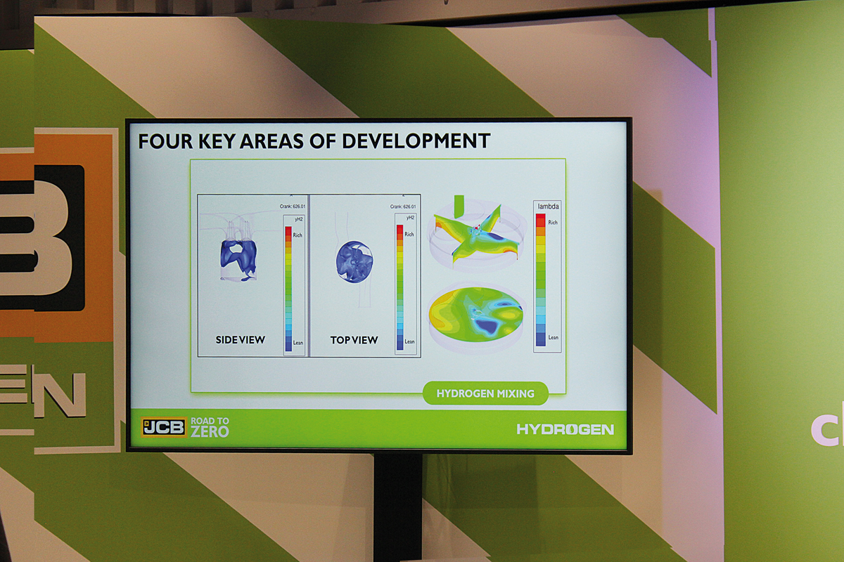 JCB – eine Traumwelt? Mitnichten: Von harter Arbeit, Tausenden von Iterationen und der Lordschen Prämisse, zu den »Anfängen und Basisprinzipien« zurückzukehren, berichtet Innovations- und Wachstums-Chef Tim Burnhope tags darauf im Motoren-Entwicklungszentrum in Derbyshire. Er spricht in erster Linie über »Lernen aus Ergebnissen« auf der steinigen »off-road to zero« – während der vergangenen sechs Jahre. Erläutert, dass es JCB gelungen sei, den Kraftstoffverbrauch heutiger Dieselmaschinen um rund 50 % im Vergleich zu jenen von vor zehn Jahren zu verringern. Führt als »Beweis« die Telematik-Daten von rund 500 000 Baufahrzeugen weltweit an. Schildert, wie emissionsarme Kraftstoffe wie HVO (Hydrierte Pflanzenöle), Biogas, E-Fuels (synthetische Kraftstoffe, die mittels Strom aus Wasser und Kohlenstoffdioxid hergestellt werden) oder Ammoniak unter die Lupe genommen und verworfen wurden, um letztlich – selbst die Wasserstoff-Brennstoffzelle ausschließend – beim H₂-Verbrennungsmotor zu landen.