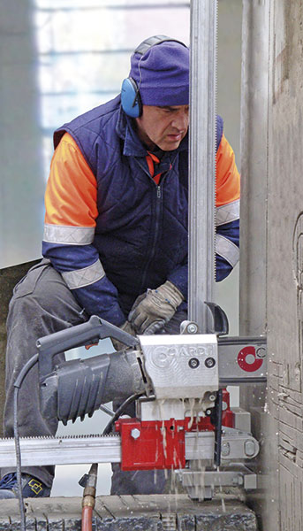www.youtube.com/watch hat seit der letzten Bauma mit der ersten Elektro-Diamantkettensäge für Profis den Einsatz von Kettensägen neu belebt, denn die Handhabung einer Benzin-Kettensäge erfordert geschultes Können. Als wichtigste Parameter beim Arbeiten mit einer Kettensäge gelten wie beim Diamantbohren die Kettengeschwindigkeit und der Anpressdruck. Bei einer Benzin-Kettensäge muss der Anwender diese beiden Parameter manuell mit dem Gasgebeschalter regeln, was eine große handwerkliche Erfahrung erfordert. Mit der neuen Coccodrillo 35 wollte Cardi die Handhabung entsprechend einfacher gestalten, weil die beiden Parameter Kettengeschwindigkeit und richtiger Anpressdruck durch eine Multifunktionselektronik überwacht werden.