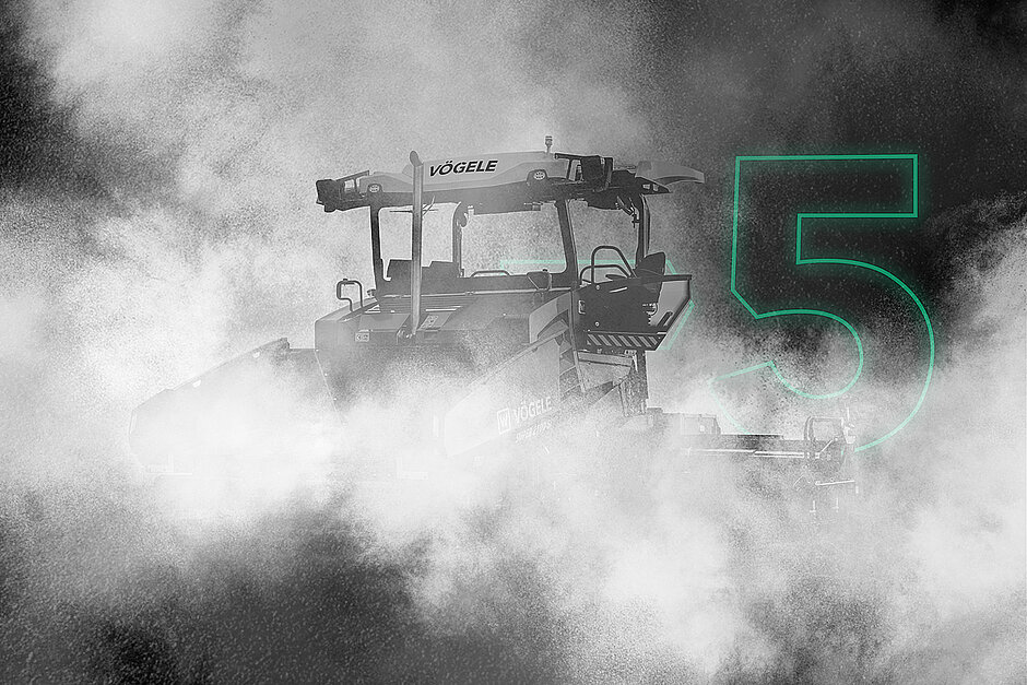 Gefragter denn je ist ebenso im Straßenbau die nachhaltige Projektrealisierung. Bei gleichbleibender Leistung werden laut Vögele durch gezielte Optimierungsmaßnahmen die Schall- und Lärmemissionen sowie der Kraftstoffverbrauch der »-5«-Fertiger reduziert. Da jeder gesparte Liter Kraftstoff den Ausstoß von CO₂ senkt, dürften hiervon Umwelt und Straßenbauunternehmen gleichermaßen profitieren.