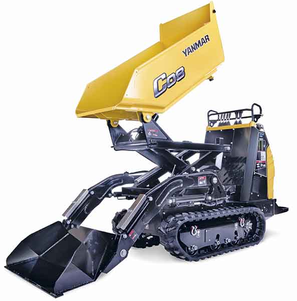 Pünktlich zur GaLaBau-Saison bringt Yanmar auch seinen neuen Minidumper C08 auf den Markt. Dieser verfügt über eine Nutzlast von 800 kg und ist in vier Ausführungen erhältlich: Standard und Hochkipp, wobei die Mulde mit einem als Option erhältlichen Selbstladesystem angehoben werden kann (für Standard- und Hochkippausführung erhältlich). Die Hochkippmodelle haben eine Abkipphöhe von bis zu 1 500 mm und können ihre Ladung in die meisten Mulden, über Zäune und Gartenmauern sowie auf höhergelegene Arbeitsflächen kippen.Der C08 kann dank seiner geringen Breite (810 mm in der Standardausführung) auch unter sehr beengten Bedingungen arbeiten. Er verfügt über ein sehr robustes, auf Raupen montiertes Fahrgestell, und kann Stufen herauffahren oder auf ungebundenen Böden und im Schnee arbeiten. Die besondere Form der Stützrollen soll auch in rauem Gelände verhindern, dass Material verschüttet wird.