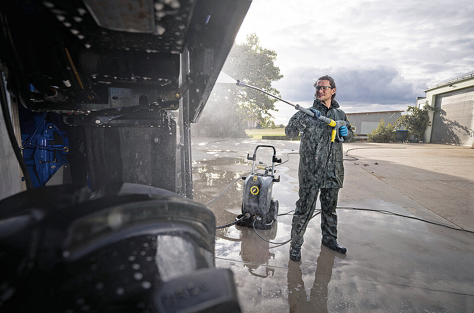 Mithilfe der EasyForce-Hochdruckpistole, die die Rückstoßkraft des Hochdruckstrahls nutzt und damit die Haltekraft für Anwender laut Kärcher auf null reduziert, soll lange und ermüdungsfrei gearbeitet werden können. Durch die Ausstattung mit Servo-Control können Anwender die Wassermengen- und Druckregulierung zudem komfortabel an der Pistole vornehmen.