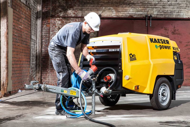 Zahlreiche Innovationen von Kaeser Kompressoren machen den Einsatz von Druckluft auf der Baustelle nun noch wirtschaftlicher. Egal, ob ein kompakter Benzin-, ein abgasarmer Diesel- oder ein emissionsloser Elektromotor den Kompressor antreibt, für alles gibt es am gewohnten Platz auf dem Freigelände Nord in der Bremerhavener Straße etwas Neues zu erleben. Natürlich kommt auch die Digitalisierung nicht zu kurz.