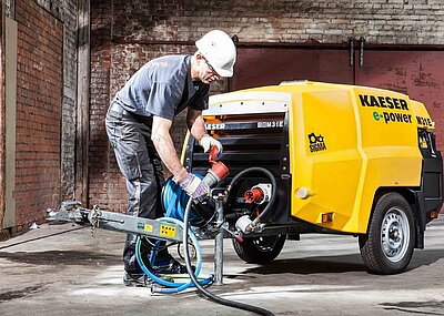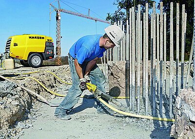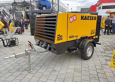 Am angestammten Platz im Freigelände Nord präsentiert Kaeser alles zum Thema umweltbewusste und wirtschaftliche Drucklufterzeugung auf der Baustelle. Hier können sowohl Mobilair-Baukompressoren mit Benzin- und Dieselmotoren als auch mit Elektroantrieb unter die Lupe genommen werden.