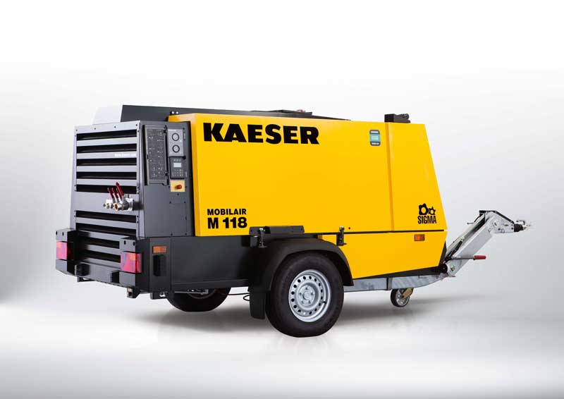 Weltprämiere auf der Nordbau – Mobilair Baukompressor M118: Im kompakten Kleid der erfolgreichen M125 wird der neueste Baukompressor der Mobilair-Serie durch einen abgasarmen 85kW Deutz Motor angetrieben. Wie bei der stärker Motorisierten M125 ist bei der M118 auch die pXv-Regelung an Bord und sorgt für Variabilität beim Maximaldruck. Gewohnt einfach ist die Bedienung durch die Steuerung Sigma Control Mobil inklusive Druckeinstellung per Pfeiltasten. Der gewählte Druck (p) nimmt Einfluss auf den dann maximal möglichen Volumenstrom (v). So fördert die Anlage bei 10 bar einen stolzen Volumenstrom von 10,2 m³/min. Wird je nach Arbeitsprozess der Maximaldruck reduziert, dann erhöht sich gleichermaßen die max. mögliche Liefermenge auf bis zu 11,5 m³/min bei 7 bar. Selbstverständlich kann die M118 mit Druckluftaufbereitung ausgerüstet werden, so dass z.B. gekühlte oder technisch ölfreie Druckluft zur Verfügung steht.