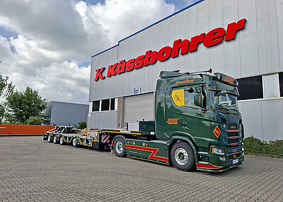 Kässbohrer hat den neuen »K.SLA HS 3« als dreiachsigen, erweiterbaren Tieflader mit hydraulischer Schwanenhals-Rampe entwickelt, um neue Standards im Schwerlasttransport zu setzen: So soll das Fahrzeug durch die hydraulische Schwanenhals-Rampe maximale Ladeeffizienz bieten. Der »K.SLA HS 3« hat ein Leergewicht von weniger als 11,3 t, was die Nutzlast erhöht und eine energieeffiziente sowie umweltfreundliche Schwerlastbeförderung ermöglicht. Für mehr Betriebssicherheit und Flexibilität ist der »K.SLA HS 3« mit Rungen und Rungentaschen versehen, mit vielen Container-Twistlocks und Zurrösen mit einer erhöhten Kapazität von bis zu 10 t, die auf dem Schwanenhals, der Plattform und den Seitenrändern positioniert sind, um eine optimale Lastverteilung zu gewährleisten.