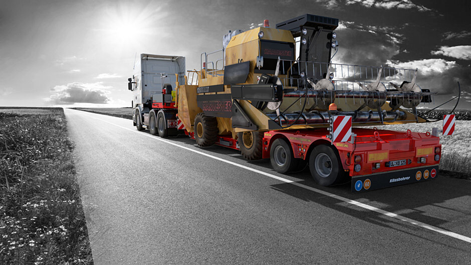 Der ausziehbare Kässbohrer-Tieflader K.SLL B 2 mit zwei Achsen ist dank eines starken Zentralfahrgestells und einer robusten Bauweise für den sicheren Transport von Landmaschinen konzipiert. Die Neuheit wartet mit einer Beckenlänge von 6 600 mm und einer Königszapfen-Kapazität von bis zu 18 t auf. Mit einer Bodenfreiheit von lediglich 100 mm und einer Ladehöhe von 400 mm ermöglicht der K.SLL B 2 den Transport großer und schwerer Landmaschinen mit hohen Rädern oder Paletten.