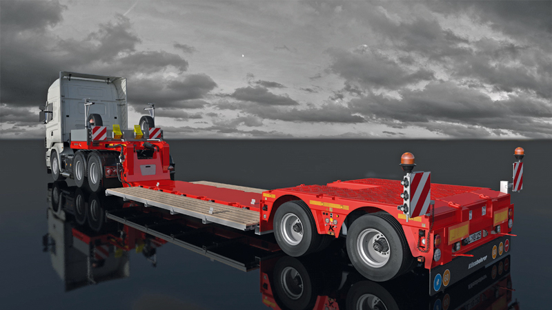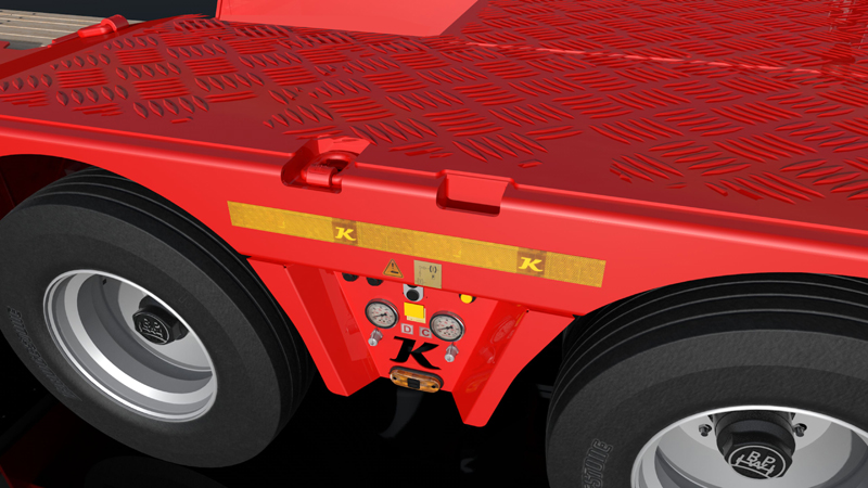 Der K.SLL B 2 mit zwei Achsen wird – um mit unterschiedlichen Radhöhen kompatibel zu sein – mit einem hydraulisch verstellbaren Schwanenhals geliefert. Mit der gewählten Metallisierung lobt Kässbohrer eine Korrosionsbeständigkeit von bis zu 20 Jahren aus. t