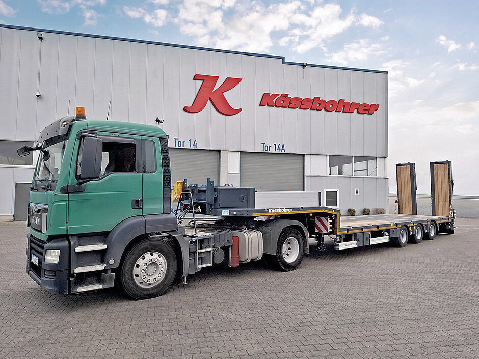 Die Löwenbad GmbH & Co. KG, nach Unternehmensangaben bekannt für ihre umfangreichen Aktivitäten im Bereich des Straßenbaumaschinentransports in ganz Deutschland, wurde durch Fuhrparkleiter Karl-Heinz Tebbe vertreten, der seine Begeisterung über die Integration des neuen Kässbohrer-»K.SLS 3«-Tiefladers in ihren Fuhrpark teilte. »Wir haben uns für Kässbohrer entschieden wegen der überlegenen Qualität, der vielseitigen Transportmöglichkeiten für Maschinen und der zuverlässigen Leistung. Wir nutzen die leichte Bauweise unseres Tiefladers, um die Nutzlastkapazität zu maximieren und den Kraftstoffverbrauch zu reduzieren. Mit fortschrittlichen Ladungssicherungsmerkmalen und flexiblen Ladeoptionen führen wir unsere Einsätze im Transport von Baumaschinen effizient durch«, so sein Fazit.