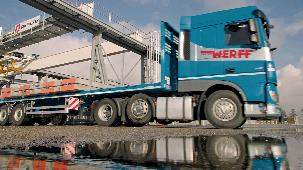 Während der Übergabe äußerte sich Theo van der Werff zufrieden über die Zusammenarbeit: »Wir arbeiten seit 2016 mit Kässbohrer zusammen, als wir unsere ersten Auflieger kauften. Im Laufe der Jahre wurden die Auflieger durch die enge Kommunikation und Zusammenarbeit mit Kässbohrer optimiert, um unseren betrieblichen Anforderungen perfekt zu entsprechen. Dank der präzisen Platzierung der Rungen entsprechend den Ladebedingungen, um verschiedene Materialien korrekt zu umschließen, sind die Auflieger perfekt auf die genauen Anforderungen von Van der Werf in Bezug auf die Ladungssicherung abgestimmt. Die Auflieger sind außerdem mit dem notwendigen Zubehör ausgestattet, sodass die Fahrer von Van der Werff stets die richtigen Mittel zur Ladungssicherung vor Ort haben. Sie sind ebenfalls an die Bedürfnisse von Van der Werf angepasst und maßgeschneidert. Unsere Auflieger sind an unterschiedliche Transportanforderungen anpassbar und zeichnen sich durch eine bemerkenswerte Langlebigkeit aus, die unserem Unternehmen langfristige Effizienz sichert. Wir sind stolz darauf, unsere Flotte um 20 neue nicht ausziehbare Schwerlast-Plattformen vom Typ ›K.SPS H‹ zu erweitern und damit unsere Kapazitäten im Transport von Baumaterialien weiter zu stärken.«j